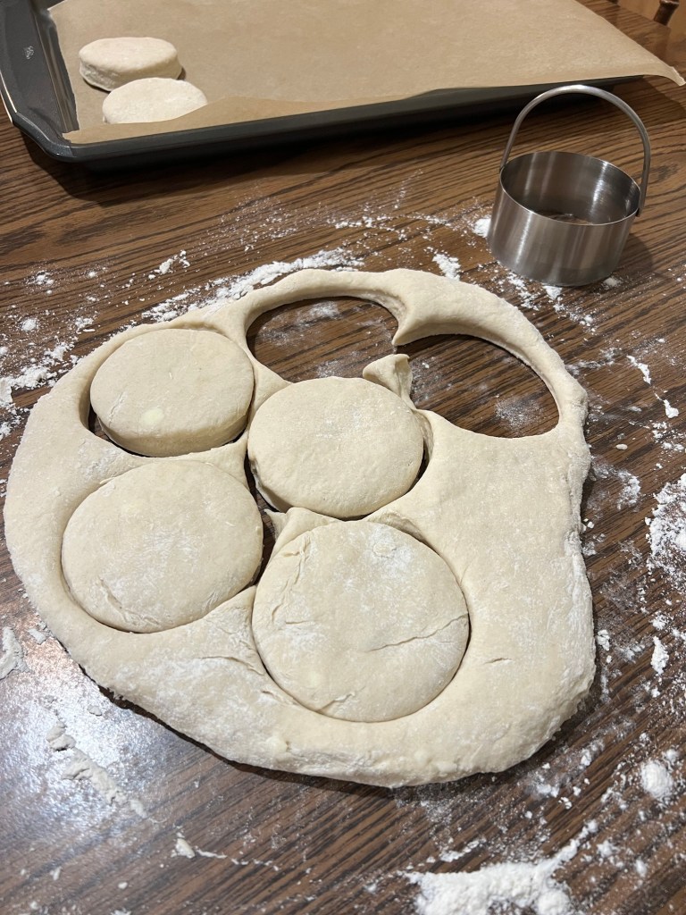 Use a biscuit cutter to cut out the biscuits